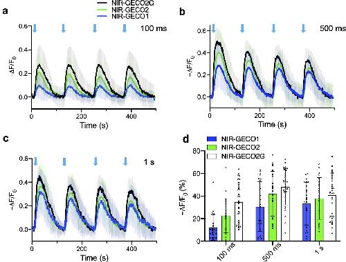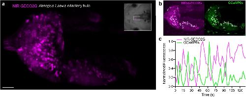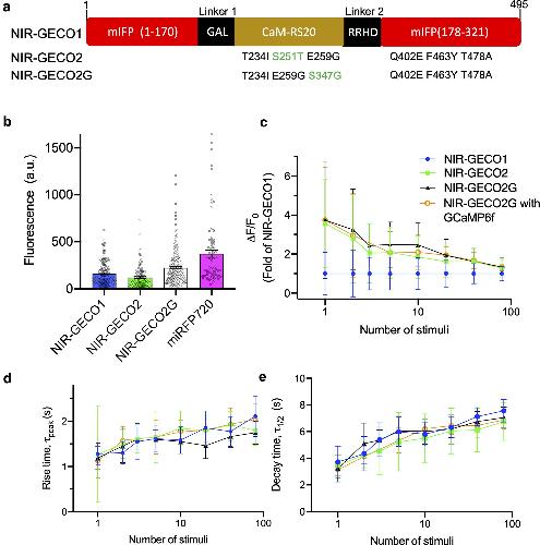 Improved genetically encoded near-infrared fluorescent calcium ion indicators for in vivo imaging. , Qian Y, Cosio DMO, Piatkevich KD, Aufmkolk S, Su WC, Celiker OT, Schohl A , Murdock MH, Aggarwal A, Chang YF, Wiseman PW, Ruthazer ES , Boyden ES, Campbell RE., PLoS Biol. November 2, 2020; 18 (11): e3000965.