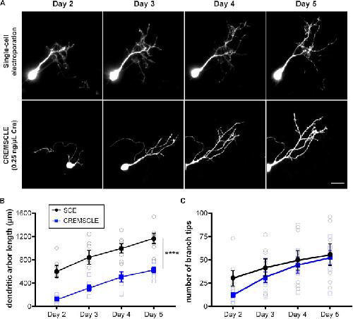 A Simple and Efficient Method for Visualizing Individual Cells in vivo by Cre-Mediated Single-Cell Labeling by Electroporation (CREMSCLE). , Schohl A , Chorghay Z, Ruthazer ES ., Front Neural Circuits. June 16, 2020; 14 47.