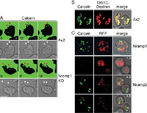 Dictyostelium Nramp1, which is structurally and functionally similar to mammalian DMT1 transporter, mediates phagosomal iron efflux., Buracco S, Peracino B, Cinquetti R, Signoretto E, Vollero A, Imperiali F, Castagna M, Bossi E, Bozzaro S., J Cell Sci. September 1, 2015; 128 (17): 3304-16. |