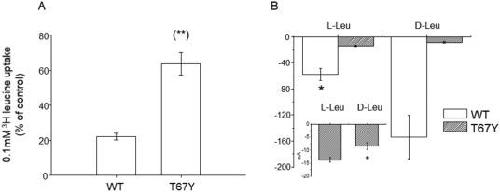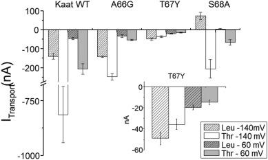 Threonine 67 is a key component in the coupling of the NSS amino acid transporter KAAT1., Giovanola M, Vollero A, Cinquetti R, Bossi E, Forrest LR, Di Cairano ES, Castagna M., Biochim Biophys Acta Biomembr. May 1, 2018; 1860 (5): 1179-1186. |