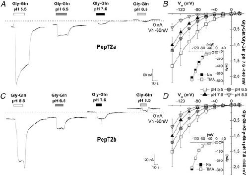 Residues R282 and D341 act as electrostatic gates in the proton-dependent oligopeptide transporter PepT1., Bossi E, Renna MD, Sangaletti R, D'Antoni F, Cherubino F, Kottra G, Peres A., J Physiol. February 1, 2011; 589 (Pt 3): 495-510. |