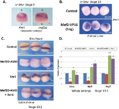 Transcriptional regulation of mesoderm genes by MEF2D during early Xenopus development. , Kolpakova A , Katz S, Keren A, Rojtblat A, Bengal E ., PLoS One. January 1, 2013; 8 (7): e69693.