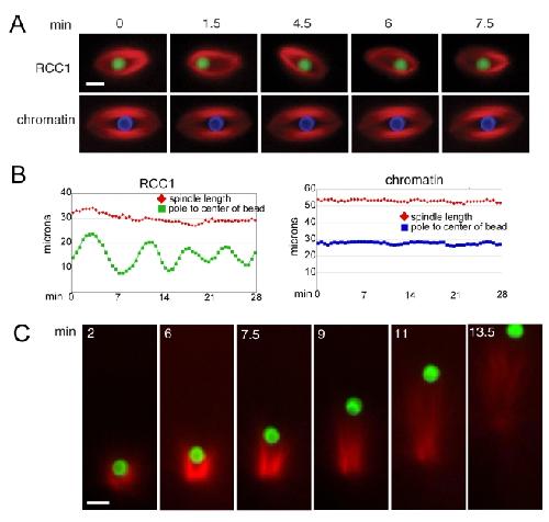 Mitotic spindle assembly around RCC1-coated beads in Xenopus egg extracts. , Halpin D, Kalab P, Wang J , Weis K, Heald R ., PLoS Biol. December 1, 2011; 9 (12): e1001225.