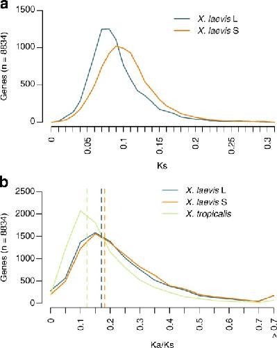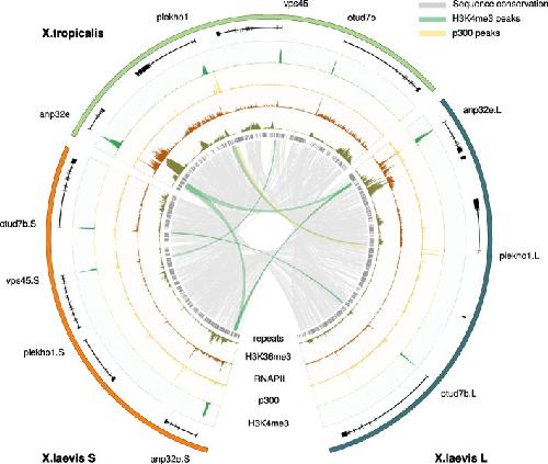 Genome evolution in the allotetraploid frog Xenopus laevis. , Session AM , Uno Y , Kwon T , Chapman JA, Toyoda A, Takahashi S , Fukui A , Hikosaka A , Suzuki A , Kondo M, van Heeringen SJ, Quigley I , Heinz S, Ogino H , Ochi H , Hellsten U, Lyons JB, Simakov O, Putnam N, Stites J, Kuroki Y, Tanaka T, Michiue T , Watanabe M, Bogdanovic O, Lister R, Georgiou G, Paranjpe SS, van Kruijsbergen I, Shu S, Carlson J, Kinoshita T, Ohta Y, Mawaribuchi S, Jenkins J, Grimwood J, Schmutz J, Mitros T, Mozaffari SV, Suzuki Y, Haramoto Y, Yamamoto TS , Takagi C, Heald R , Miller K, Haudenschild C, Kitzman J , Nakayama T , Izutsu Y , Robert J , Fortriede J , Burns K , Lotay V , Karimi K , Yasuoka Y , Dichmann DS , Flajnik MF , Houston DW , Shendure J, DuPasquier L , Vize PD , Zorn AM , Ito M, Marcotte EM , Wallingford JB , Ito Y, Asashima M , Ueno N , Matsuda Y, Veenstra GJ , Fujiyama A, Harland RM , Taira M , Rokhsar DS ., Nature. October 20, 2016; 538 (7625): 336-343.
