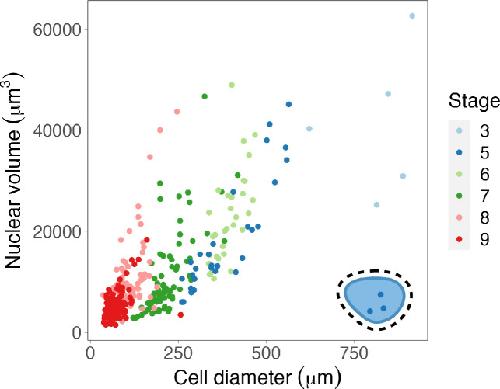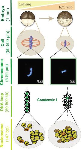 Mitotic chromosomes scale to nuclear-cytoplasmic ratio and cell size in Xenopus. , Zhou CY , Dekker B, Liu Z, Cabrera H, Ryan J, Dekker J, Heald R ., Elife. April 25, 2023; 12