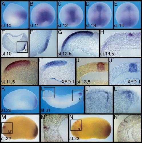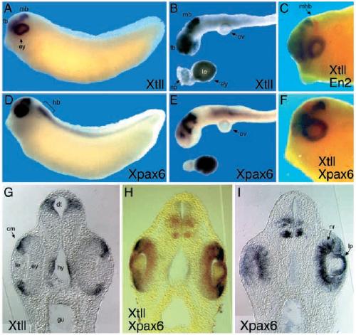 The Xenopus homologue of the Drosophila gene tailless has a function in early eye development., Hollemann T, Bellefroid E, Pieler T., Development. July 1, 1998; 125 (13): 2425-32.