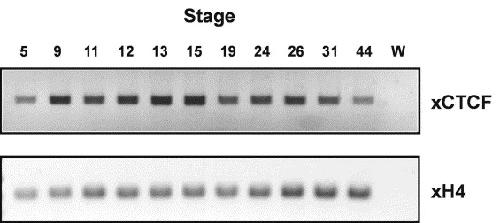 Molecular cloning and expression of the chromatin insulator protein CTCF in Xenopus laevis., Burke LJ, Hollemann T, Pieler T, Renkawitz R., Mech Dev. April 1, 2002; 113 (1): 95-8.