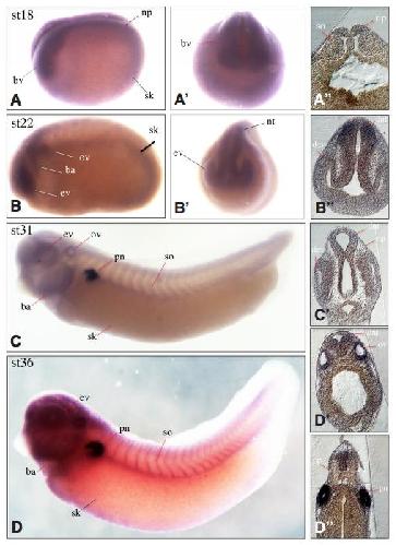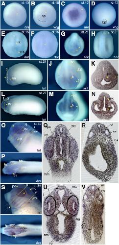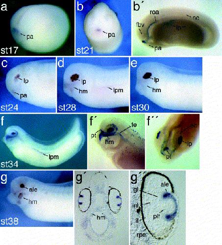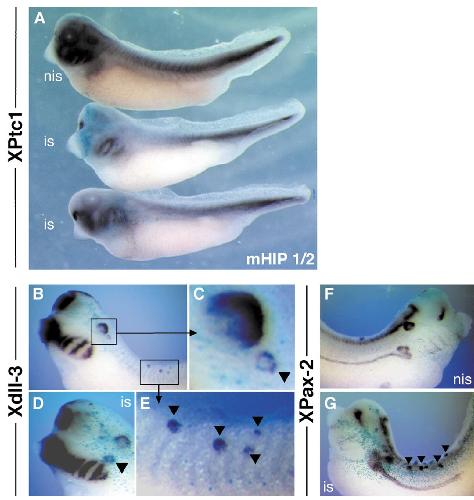 Olfactory and lens placode formation is controlled by the hedgehog-interacting protein (Xhip) in Xenopus., Cornesse Y, Pieler T, Hollemann T., Dev Biol. January 15, 2005; 277 (2): 296-315.