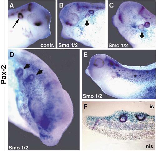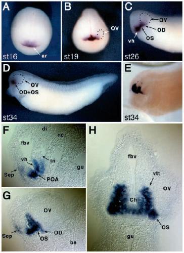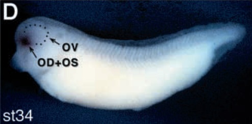 A restrictive role for Hedgehog signalling during otic specification in Xenopus., Koebernick K, Hollemann T, Pieler T., Dev Biol. August 15, 2003; 260 (2): 325-38.