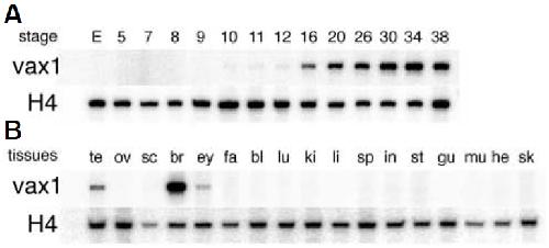 Vax1, a novel homeobox-containing gene, directs development of the basal forebrain and visual system., Hallonet M, Hollemann T, Pieler T, Gruss P., Genes Dev. December 1, 1999; 13 (23): 3106-14.