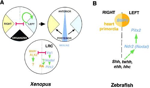 Pitx2 determines left- right asymmetry of internal organs in vertebrates. , Ryan AK, Blumberg B , Rodriguez-Esteban C, Yonei-Tamura S, Tamura K , Tsukui T, de la Peña J, Sabbagh W, Greenwald J, Choe S, Norris DP, Robertson EJ, Evans RM, Rosenfeld MG, Izpisúa Belmonte JC ., Nature. August 6, 1998; 394 (6693): 545-51.
