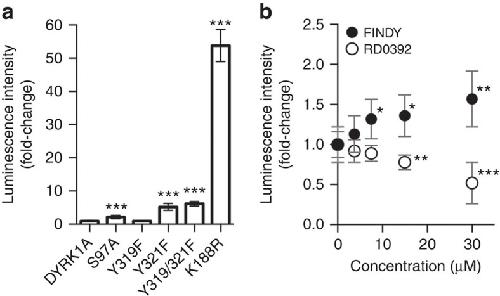 Selective inhibition of the kinase DYRK1A by targeting its folding process. , Kii I, Sumida Y, Goto T , Sonamoto R, Okuno Y, Yoshida S, Kato-Sumida T, Koike Y, Abe M, Nonaka Y, Ikura T, Ito N, Shibuya H , Hosoya T, Hagiwara M., Nat Commun. April 22, 2016; 7 11391.