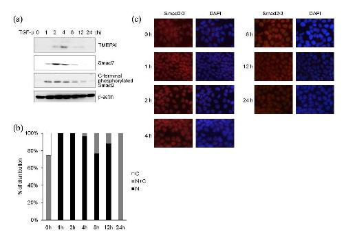 TMEPAI, a transmembrane TGF-beta-inducible protein, sequesters Smad proteins from active participation in TGF-beta signaling. , Watanabe Y, Itoh S, Goto T , Ohnishi E, Inamitsu M, Itoh F, Satoh K, Wiercinska E, Yang W, Shi L, Tanaka A, Nakano N, Mommaas AM, Shibuya H , Ten Dijke P, Kato M., Mol Cell. January 15, 2010; 37 (1): 123-34.