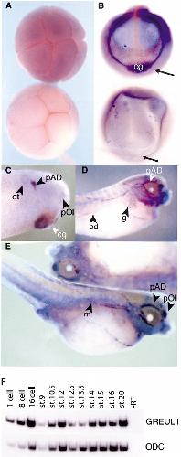 The E3 ubiquitin ligase GREUL1 anteriorizes ectoderm during Xenopus development. , Borchers AG , Hufton AL, Eldridge AG, Jackson PK , Harland RM , Baker JC ., Dev Biol. November 15, 2002; 251 (2): 395-408.
