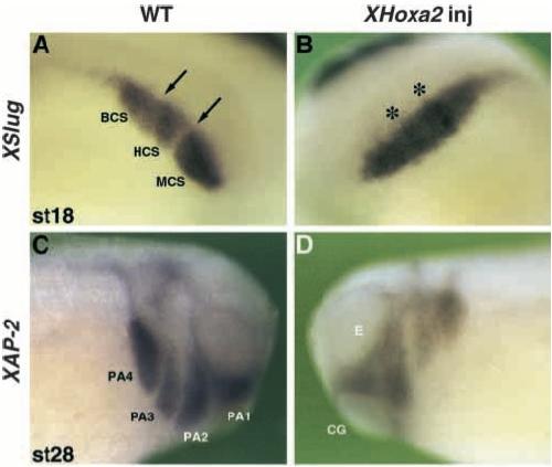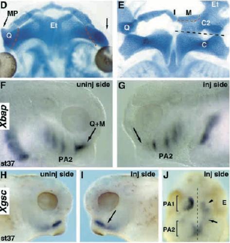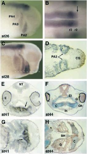 Ectopic Hoxa2 induction after neural crest migration results in homeosis of jaw elements in Xenopus., Pasqualetti M, Ori M, Nardi I, Rijli FM., Development. December 1, 2000; 127 (24): 5367-78. |