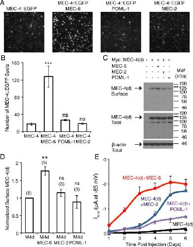 Caenorhabditis elegans paraoxonase-like proteins control the functional expression of DEG/ENaC mechanosensory proteins., Chen Y, Bharill S, Altun Z, O'Hagan R, Coblitz B, Isacoff EY, Chalfie M., Mol Biol Cell. April 15, 2016; 27 (8): 1272-85. |