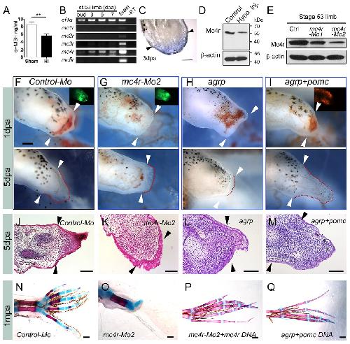 Melanocortin Receptor 4 Signaling Regulates Vertebrate Limb Regeneration., Zhang M, Chen Y, Xu H, Yang L, Yuan F, Li L, Xu Y, Chen Y, Zhang C, Lin G., Dev Cell. August 20, 2018; 46 (4): 397-409.e5. |