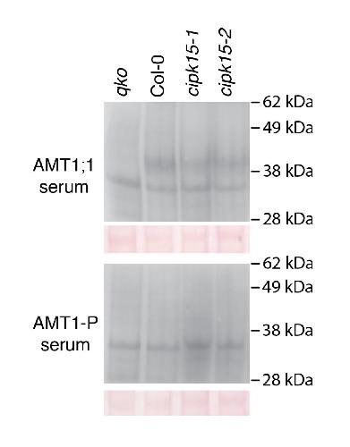 Feedback inhibition of AMT1 NH4+-transporters mediated by CIPK15 kinase., Chen HY, Chen YN, Wang HY, Liu ZT, Frommer WB, Ho CH., BMC Biol. December 14, 2020; 18 (1): 196. |