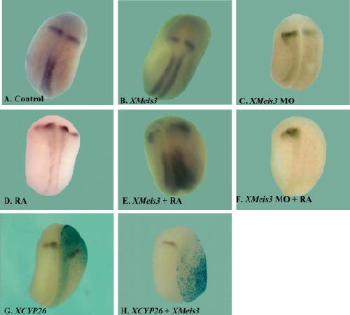 The Meis3 protein and retinoid signaling interact to pattern the Xenopus hindbrain., Dibner C, Elias S, Ofir R, Souopgui J, Kolm PJ, Sive H, Pieler T, Frank D., Dev Biol. July 1, 2004; 271 (1): 75-86.
