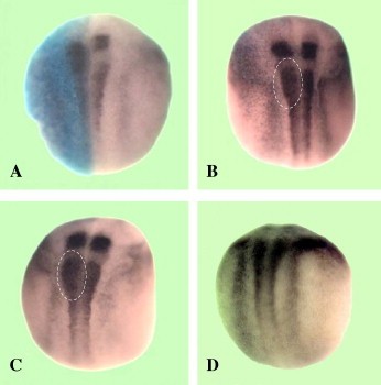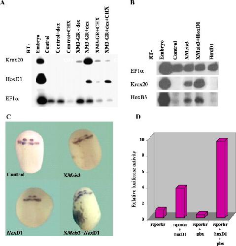 Regulation of the Xenopus labial homeodomain genes, HoxA1 and HoxD1: activation by retinoids and peptide growth factors., Kolm PJ, Sive HL., Dev Biol. January 1, 1995; 167 (1): 34-49.