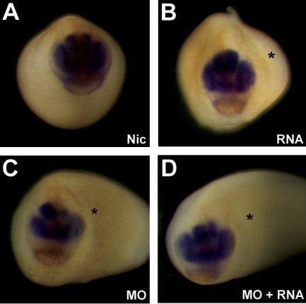Knockdown of the complete Hox paralogous group 1 leads to dramatic hindbrain and neural crest defects., McNulty CL, Peres JN, Bardine N, van den Akker WM, Durston AJ., Development. June 1, 2005; 132 (12): 2861-71. |