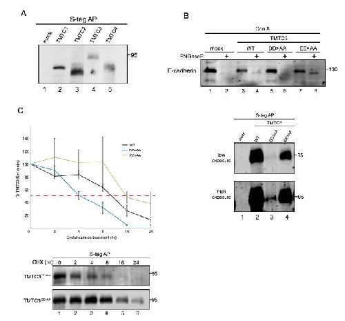 Endoplasmic reticulum transmembrane protein TMTC3 contributes to O-mannosylation of E-cadherin, cellular adherence, and embryonic gastrulation. , Graham JB, Sunryd JC, Mathavan K, Weir E, Larsen ISB, Halim A, Clausen H, Cousin H , Alfandari D , Hebert DN., Mol Biol Cell. February 1, 2020; 31 (3): 167-183.