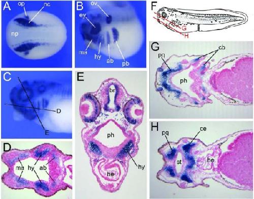 Developmental expression of Pitx2c in Xenopus trigeminal and profundal placodes. , Jeong YH, Park BK, Saint-Jeannet JP , Lee YH ., Int J Dev Biol. January 1, 2014; 58 (9): 701-4.