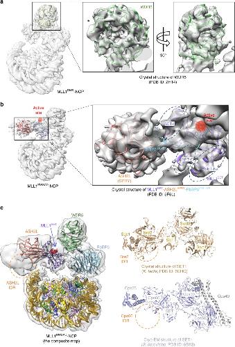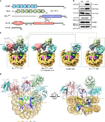 Cryo-EM structure of the human MLL1 core complex bound to the nucleosome. , Park SH, Ayoub A, Lee YT , Xu J, Kim H , Zheng W, Zhang B, Sha L, An S, Zhang Y , Cianfrocco MA, Su M, Dou Y, Cho US., Nat Commun. December 5, 2019; 10 (1): 5540.