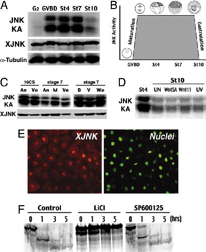 Jun NH2-terminal kinase ( JNK) prevents nuclear beta-catenin accumulation and regulates axis formation in Xenopus embryos. , Liao G, Tao Q , Kofron M , Chen JS , Schloemer A, Davis RJ, Hsieh JC, Wylie C , Heasman J , Kuan CY., Proc Natl Acad Sci U S A. October 31, 2006; 103 (44): 16313-8.