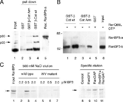 RanBP3 enhances nuclear export of active (beta)-catenin independently of CRM1. , Hendriksen J, Fagotto F , van der Velde H, van Schie M, Noordermeer J, Fornerod M., J Cell Biol. December 5, 2005; 171 (5): 785-97.