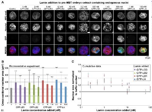 Concentration-dependent Effects of Nuclear Lamins on Nuclear Size in Xenopus and Mammalian Cells. , Jevtić P, Edens LJ, Li X, Nguyen T, Chen P, Levy DL ., J Biol Chem. November 13, 2015; 290 (46): 27557-71.