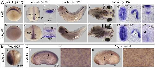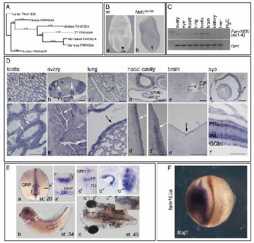 The evolutionary conserved FOXJ1 target gene Fam183b is essential for motile cilia in Xenopus but dispensable for ciliary function in mice., Beckers A, Ott T, Schuster-Gossler K, Boldt K, Alten L, Ueffing M, Blum M, Gossler A., Sci Rep. October 2, 2018; 8 (1): 14678.