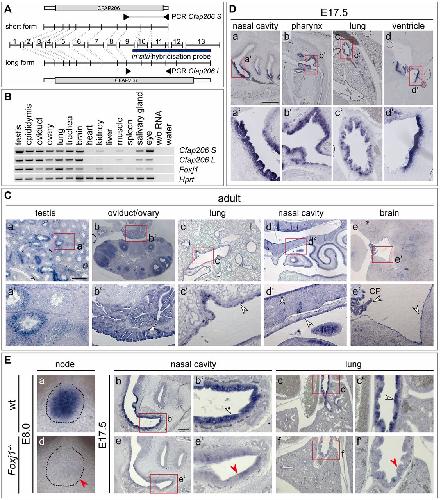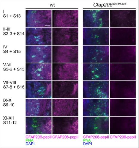 The FOXJ1 target Cfap206 is required for sperm motility, mucociliary clearance of the airways and brain development., Beckers A, Adis C, Schuster-Gossler K, Tveriakhina L, Ott T, Fuhl F, Hegermann J, Boldt K, Serth K, Rachev E, Alten L, Kremmer E, Ueffing M, Blum M, Gossler A., Development. June 15, 2020; 147 (21):