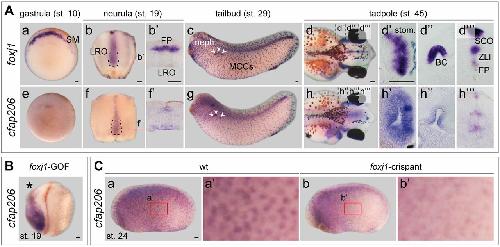 A novel serotonin-secreting cell type regulates ciliary motility in the mucociliary epidermis of Xenopus tadpoles., Walentek P, Bogusch S, Thumberger T, Vick P, Dubaissi E, Beyer T, Blum M, Schweickert A., Development. April 1, 2014; 141 (7): 1526-33.