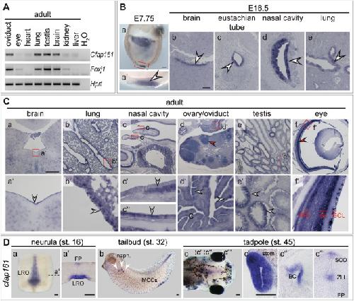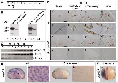 The highly conserved FOXJ1 target CFAP161 is dispensable for motile ciliary function in mouse and Xenopus., Beckers A, Fuhl F, Ott T, Boldt K, Brislinger MM, Walentek P, Schuster-Gossler K, Hegermann J, Alten L, Kremmer E, Przykopanski A, Serth K, Ueffing M, Blum M, Gossler A., Sci Rep. June 25, 2021; 11 (1): 13333.