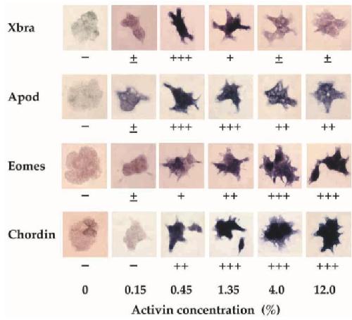 Cell response to different concentrations of a morphogen: activin effects on Xenopus animal caps., Gurdon JB, Ryan K, Stennard F, McDowell N, Zorn AM, Crease DJ, Dyson S., Cold Spring Harb Symp Quant Biol. January 1, 1997; 62 151-8. |
