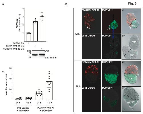 eGFP-tagged Wnt-3a enables functional analysis of Wnt trafficking and signaling and kinetic assessment of Wnt binding to full-length Frizzled., Wesslowski J, Kozielewicz P, Wang X, Cui H, Schihada H, Kranz D, Karuna M P, Levkin P, Gross JC, Boutros M, Schulte G, Davidson G., J Biol Chem. June 26, 2020; 295 (26): 8759-8774. |