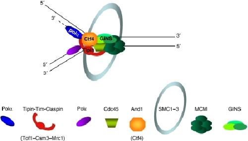 Tipin/ Tim1/ And1 protein complex promotes Pol alpha chromatin binding and sister chromatid cohesion. , Errico A, Cosentino C, Rivera T, Losada A, Schwob E, Hunt T , Costanzo V., EMBO J. December 2, 2009; 28 (23): 3681-92.
