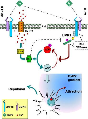 BMP gradients steer nerve growth cones by a balancing act of LIM kinase and Slingshot phosphatase on ADF/cofilin. , Wen Z, Han L , Bamburg JR, Shim S , Ming GL, Zheng JQ., J Cell Biol. July 2, 2007; 178 (1): 107-19.