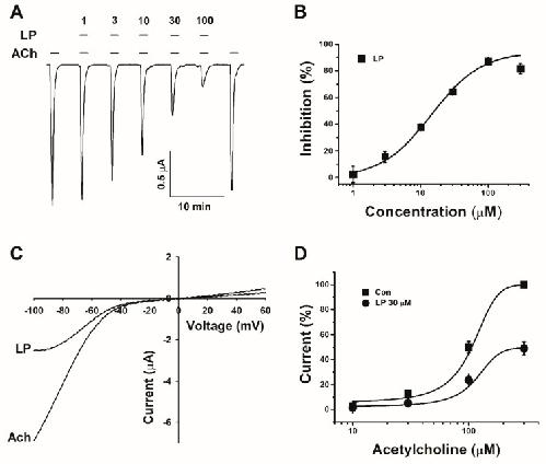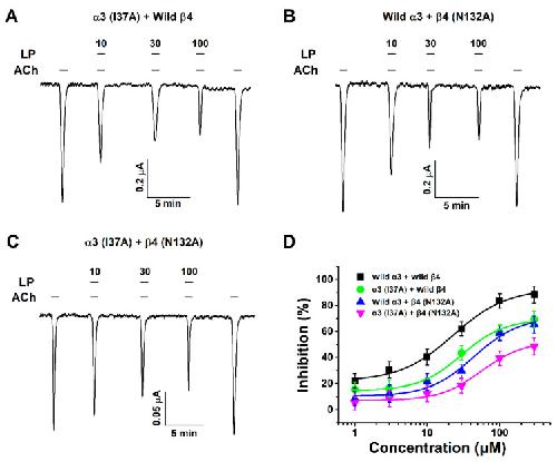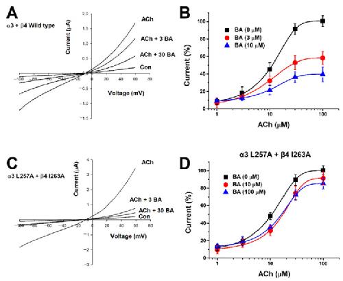 Molecular Determinants of α3β4 Nicotinic Acetylcholine Receptors Inhibition by Triterpenoids. , Eom S, Kim YS, Lee SB, Noh S, Yeom HD, Bae H, Lee JH ., Biol Pharm Bull. January 1, 2018; 41 (1): 65-72.