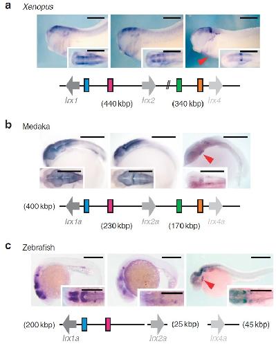 An evolutionarily conserved three-dimensional structure in the vertebrate Irx clusters facilitates enhancer sharing and coregulation. , Tena JJ, Alonso ME, de la Calle-Mustienes E , Splinter E, de Laat W, Manzanares M, Gómez-Skarmeta JL ., Nat Commun. January 1, 2011; 2 310.
