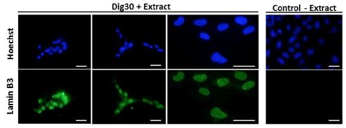 Nuclear import of Xenopus egg extract components into cultured cells for reprogramming purposes: a case study on goldfish fin cells. , Chênais N, Lorca T, Morin N , Guillet B, Rime H, Le Bail PY, Labbé C., Sci Rep. February 27, 2019; 9 (1): 2861.