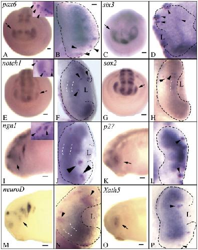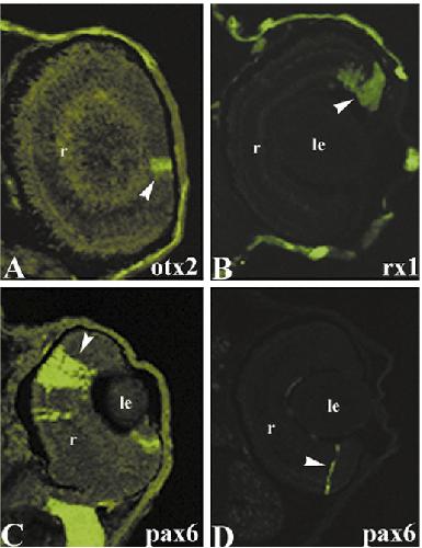 Alterations of rx1 and pax6 expression levels at neural plate stages differentially affect the production of retinal cell types and maintenance of retinal stem cell qualities., Zaghloul NA, Moody SA., Dev Biol. June 1, 2007; 306 (1): 222-40. |
