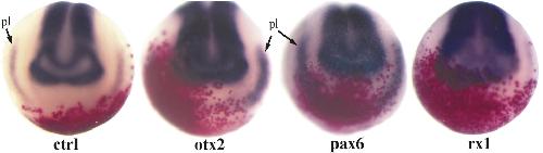 Transcription factors of the anterior neural plate alter cell movements of epidermal progenitors to specify a retinal fate., Kenyon KL, Zaghloul N, Moody SA., Dev Biol. December 1, 2001; 240 (1): 77-91. |
