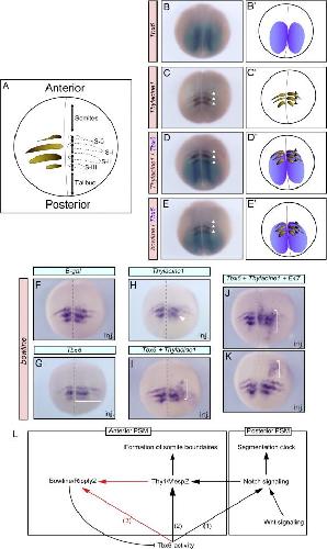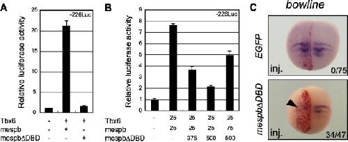 Physical interaction between Tbx6 and mespb is indispensable for the activation of bowline expression during Xenopus somitogenesis. , Hitachi K , Danno H, Kondow A , Ohnuma K, Uchiyama H, Ishiura S, Kurisaki A, Asashima M ., Biochem Biophys Res Commun. August 8, 2008; 372 (4): 607-12.