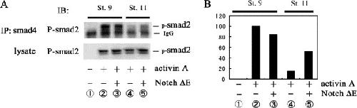 Notch signaling modulates the nuclear localization of carboxy-terminal-phosphorylated smad2 and controls the competence of ectodermal cells for activin A. , Abe T, Furue M, Kondow A , Matsuzaki K, Asashima M ., Mech Dev. May 1, 2005; 122 (5): 671-80.