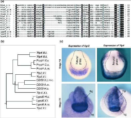 Agr2-interacting Prod1-like protein Tfp4 from Xenopus laevis is necessary for early forebrain and eye development as well as for the tadpole appendage regeneration., Tereshina MB, Ivanova AS, Eroshkin FM, Korotkova DD, Nesterenko AM, Bayramov AV, Solovieva EA, Parshina EA, Orlov EE, Martynova NY, Zaraisky AG., Genesis. May 1, 2019; 57 (5): e23293. |