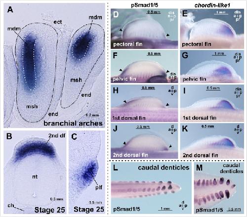 The emergence of chordin-like1 in gnathostomes may have contributed to the evolution of paired appendages., Ermakova GV, Meyntser IV, Mugue NS, Lyubetsky VA, Zaraisky AG, Bayramov AV., Front Cell Dev Biol. August 29, 2025; 13 1649996. |