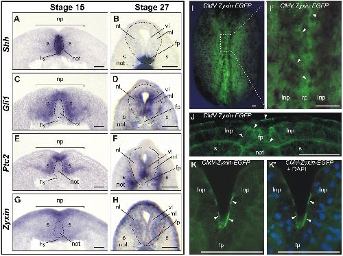 The cytoskeletal protein Zyxin inhibits Shh signaling during the CNS patterning in Xenopus laevis through interaction with the transcription factor Gli1., Martynova NY, Ermolina LV, Ermakova GV, Eroshkin FM, Gyoeva FK, Baturina NS, Zaraisky AG., Dev Biol. August 1, 2013; 380 (1): 37-48. |