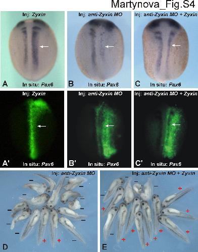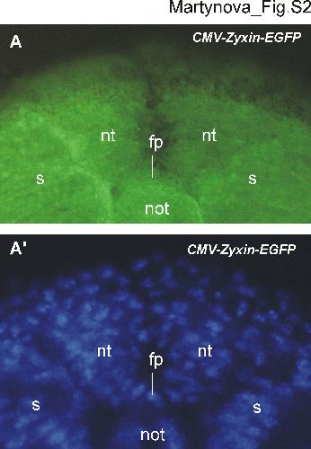 The cytoskeletal protein Zyxin interacts with the zinc-finger transcription factor Zic1 and plays the role of a scaffold for Gli1 and Zic1 interactions during early development of Xenopus laevis., Martynova NY, Parshina EA, Ermolina LV, Zaraisky AG., Biochem Biophys Res Commun. September 26, 2018; 504 (1): 251-256. |
